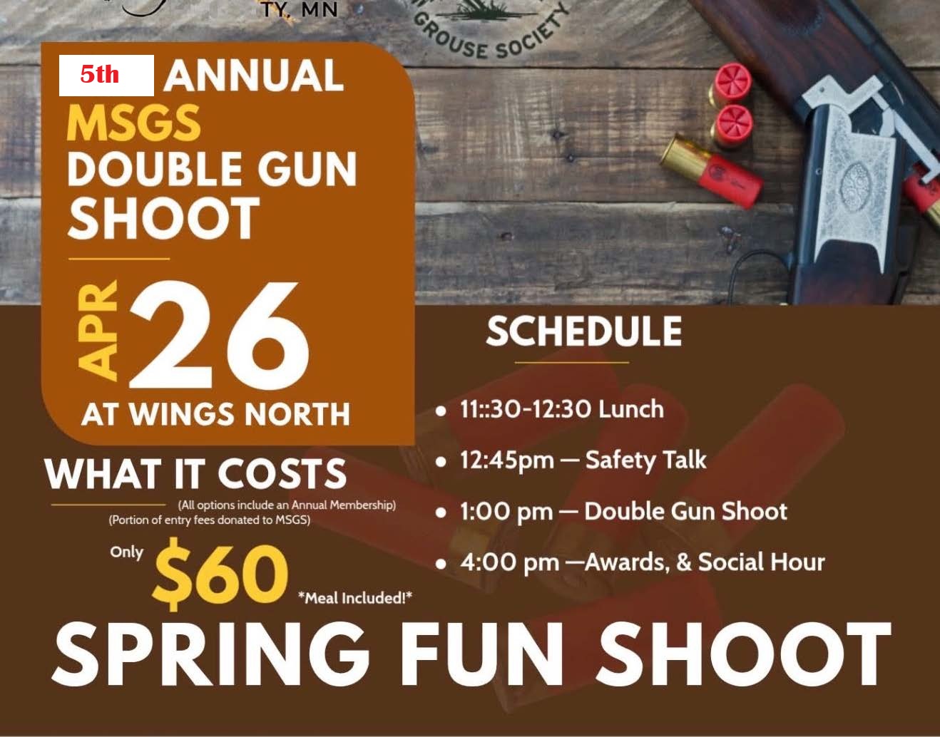 MSGS will be holding our 5th annual Double Gun Shoot at Wings North, Sunday April 26th.
